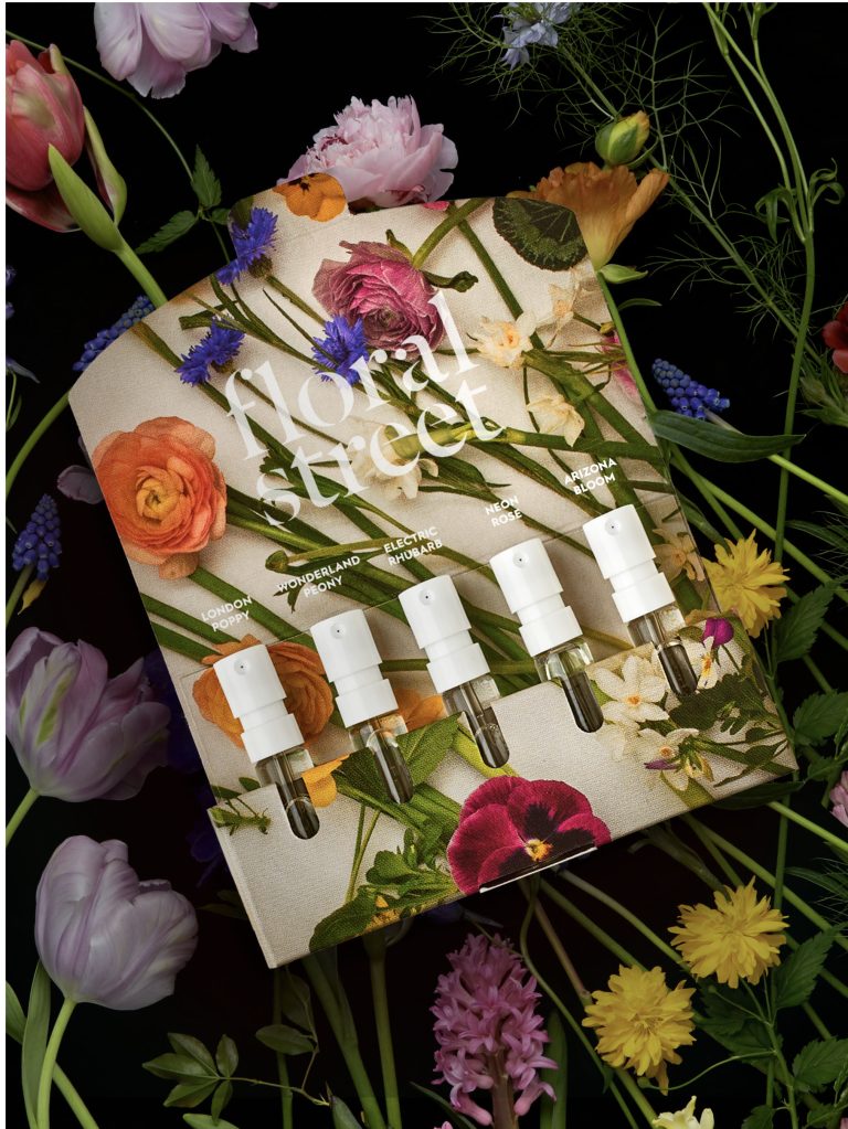 A mini scent wardrobe containing five 1.5ml spray bottles of vegan, sustainable and unforgettable floral scents. This mini but mighty pack contains London Poppy, Neon Rose, Wonderland Peony, Electric Rhubarb and their brand new and exclusive scent Arizona Bloom..